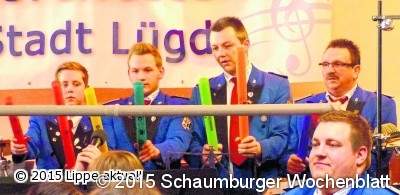 Unterhaltsam, humorig und informativ wie immer moderierte Jörn Diekmann, der sich nur einmal vom Dirigentenpult verdrängen ließ als David Quinkert sein Horn beim komplizierten "Phantom der Oper” gegen die Orchesterleitung eintauschte. Und wie immer hatten sich die Musikerinnen und Musiker auch diesmal wieder kleine Gags einfallen lassen, um die Stücke auch optisch noch aufzupeppen. Da waren Pickelhauben ebenso zu sehen wie Micky Maus- Ohren oder Schleifchen im Haar. Beim Ohrwurm "Rosamunde” fehlte das zünftige Anstoßen mit einem Bier nicht. Wie nicht anders zu erwarten feierte das Publikum das Blasorchester für diese wiederum sehr reife Leistung, die erst durch intensives Üben in vielen Stunden in der Freizeit möglich wurde, fast schon enthusiastisch. Kaum enden wollender Applaus, stehende Ovationen und Bravo-Rufe dankten für ein Konzert des Blasorchesters, das selbstverständlich, aber "rein zufällig", wie Jörn Diekmann augenzwinkernd erklärte, noch Zugaben parat hielt, darunter die aus Schottland übernommene heimliche "Lügder Nationalhymne" (Diekmann), das "Highland Cathedral", das selbst ohne Dudelsäcke seine Funktion als Ohrwurm nicht verliert.