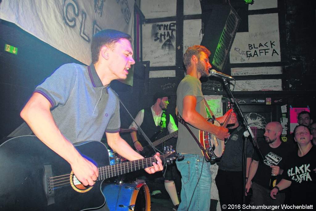 anlässlich des 40-jährigen Jubiläums im JZO. Zum Konzert fanden sich 85 Gäste aller Altersstufen ein. Hauptakt des Abends war die dänische Band The Movement, die auf ihrer Deutschland-Tournee, einen Zwischenhalt in Oerlinghausen einlegte. Die Band die ihre Wurzeln in der britischen Arbeiterklasse verzeichnet, knüpft an musikalische Größen wie The Who und The Clash an. Ihr energiegeladener Mod-Rock brachte die 85 Gäste schnell in Bewegung. Die mitreißende Bühnen-Show des Bassisten Sebastian Page und des Gitarristen Lukas Scherfig füllte die kleine JZO-Bühne komplett aus. Lokalekolorid brachte die Band The Trash Templars aus Bielefeld in den Konzertabend. In selbst kreierten Ritter-Kostümen, denen Blecheimer als Helm-Ersatz dienten, brachten sie dynamischen 60s Garage Punk auf die Bühne. Musikalisch erinnern die vier an The Hives und begeisterten das Publikum sofort. Den Abend eröffnete Barbers Clerk aus Xanten. Zu stimmungsvollem Irish Folk Punk wurde von der ersten Minute an getanzt. Instrumente wie Banjo, Mandoline und Tin Whistle gaben der Musik einen unverwechselbaren Klang. Neben den eigenen Kompositionen gaben sie auch Covers von bekannten Irish Folk Songs zum Besten, die vom Publikum laut mitgesungen wurden. Aus Sicht der veranstaltenden Jugendlichen des JZO war das Konzert ein voller Erfolg. "Drei qualitativ überragende Bands, ein volles Haus und Superstimmung – was will man mehr? Das Konzert war der Höhepunkt des Programms zum 40-jährigen. Es war schön zu sehen, wie jung und alt gemeinsam feierten.", fasst Louisa Schröder den Abend zusammen.