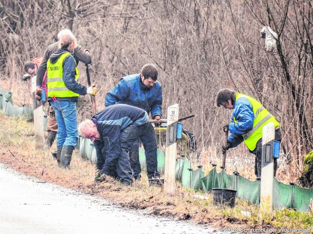 RINTELN (ste). Der Frühling lockt Kröte & Co aus dem Winterquartier und der NABU Rinteln baut Schutzzäune, um möglichst wenige auf ihren Wegen über die Straßen zu verlieren. Während die Amphibien ihre Erdlöcher im Wald verlassen und sich auf den Weg zu den Laichgewässern machen, um dort für Nachwuchs zu sorgen, ist der NABU Rinteln darum bemüht, ihnen diesen Weg möglichst schadlos zu gestalten. Dazu wurden jetzt in Möllenbeck und am Waldkater Amphibienschutzzäune aufgestellt. Denn der zum Teil aufgewärmte Asphalt ist verlockend für eine Pause auf ihrem Wanderweg, doch dort lauert die tödliche Gefahr in Form von Autos. Deshalb bittet der NABU Rinteln Autofahrer bis Mitte April um besondere Umsicht und langsames Fahren an den Amphibienschutzzäunen, um die Helferinnen und Helfer nicht zu gefährden. Denn diese holen die Amphibien aus dem Auffangeimern und transportieren sie über die Straßen. Ärgerlich für die Naturschützer: "Im Rahmen der Begehung des Amphibienleitsystems in Steinbergen an der Arensburger Straße gegenüber von Schloss Arensburg mussten wir feststellen, dass unser Amphibienleitsystem stark beschädigt worden ist", so Kathy Büscher. Der mutmaßliche Verursacher habe offensichtlich Holzfällarbeiten durchgeführt und mit schwerem Gerät diesen Bereich befahren.Foto: privat