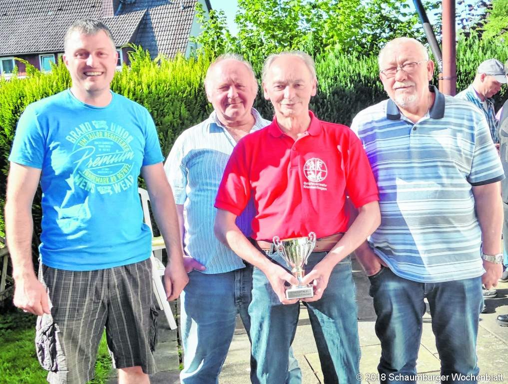 KRANKENHAGEN (ste). Einst stiftete die Kirchengemeinde Krankenahgen den "Dorfpokal" und der Wettkampf darum ist der mittlerweile älteste im Vereinsgeschehen der Sportschützen des Dorfes. Nun muss eine Sockelerhöhung Platz schaffen für die künftigen Plaketten, auf denen seit dem Jahre 2000 nahtlos alle Sieger notiert sind. Elf Mannschaften aus Krankenhagen, Friedrichshöhe und Volksen mit 56 Teilnehmern kämpften jetzt um die Trophäe. Die Regeln: 50 Meter Entfernung, fünf Schuss Kleinkaliber auf die Zehnerscheibe. Die vier besten Schützen jeder Mannschaft sammeln ihre Ringzahl für das Gruppenergebnis. Unter den Schützen durfte kein aktiver Sportschütze sein. Wartezeiten zwischen den einzelnen Schießen wurden durch Speisen, Getränke und ein Glücksschießen mit Luftpistole auf Motivscheiben überbrückt. Sieger hier: Christian Felske vor "Kappo" und Timo Doerfert. Gewinner des Dorfpokales wurde mit 175 von 200 möglichen Ring die Feuerwehr Krankenhagen vor "TSV 2" mit 156 Ring und den Dreamboulern mit 155 Treffern. Sportleiter Dieter Flentge verabschiedete sichtlich zufriedene Gäste und freut sich auf ein Wiedersehen im Jahr 2019 wenn der Pokal sein 20-jähriges Jubiläum feiern wird.Foto: privat