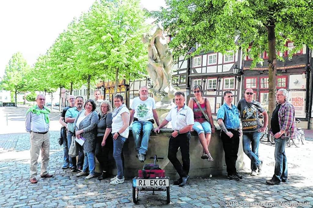 RINTELN (ste). Das erste Treffen der Facebookgruppe "Historisches Rinteln" wird von den 14 gut gelaunten Teilnehmern als wirklich "schöner Erfolg" gewertet. Nach einem fröhlichen und unterhaltsamen Nachmittag im Küchenstudio bei Jörg Brandt und durchaus herrlichem Wetter, brachte die gut vorbereitete Martina Kuhnert den Teilnehmern Geheimnisse und Informationen der schönen Weserstadt nahe. Der etwa zweistündige Stadtrundgang zeigte, dass man auch als Ur-Rintelner bei solchen Veranstaltungen noch einiges dazu lernen und erfahren kann. Der Nachmittag klang bei kalten Getränken und leckerem selbstgebackenem Kuchen sowie weiteren netten Gesprächen aus. Bemerkenswert war allerdings auch, dass die Teilnehmer nicht wie auf Kommando aus einanderliefen, sondern dass die Gruppe sich erst nach und nach reduzierte. "Ein sicheres Zeichen dafür, dass wir uns alle rundum wohl gefühlt haben", so Hartmut Herforth, der der Administrator der Gruppe auf der sozialen Plattform Facebook ist. Foto: privat
