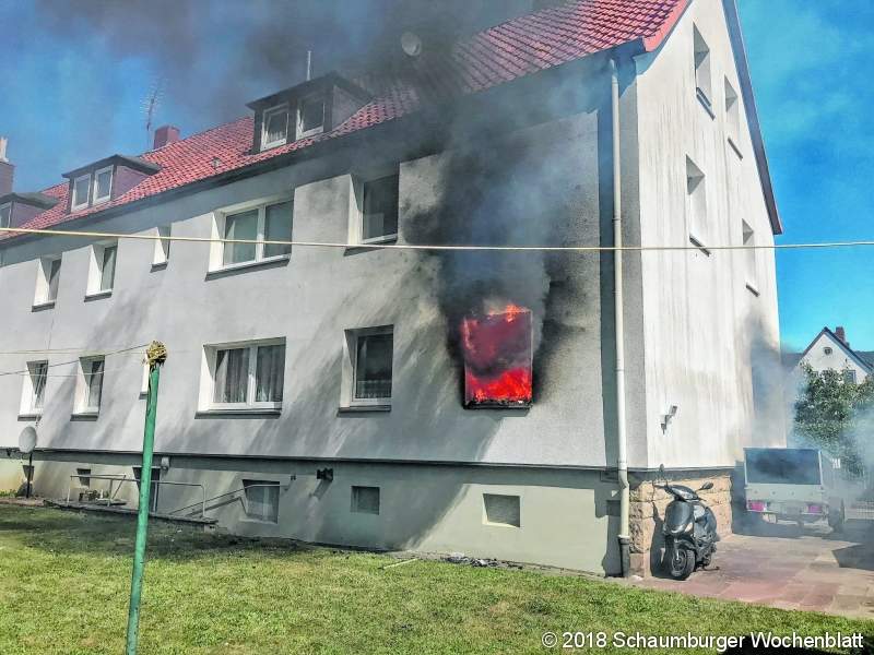 RINTELN (ste). Feuerwehrsirenen, Martinshörner, das Dröhnen eines Rettungshubschraubers über der Stadt. Am Samstagmorgen brach in einer Wohnung im Saarweg ein Feuer aus. Durch die Rauchgase wurden fünf Menschen in dem Mehrfamilienhaus verletzt, zwei von ihnen schwer. Die Rintelner Feuerwehren waren mit einem Großaufgebot angerückt, um die Flammen zu löschen. Neben den Wehren waren noch vier Rettungswagen, zwei Notarztwagen, der Rettungshubschrauber und natürlich die Polizei im Einsatz. Die Bewohner des gesamten Gebäudes wurden evakuiert und in dem benachbarten Kindergarten untergebracht, wo ein Sommerfest kurzerhand abgesagt wurde. Das Haus ist in Teilen unbewohnbar geworden und das Rintelner Ordnungsamt musste sich um Unterbringung der Bewohner kümmern. Foto: privat