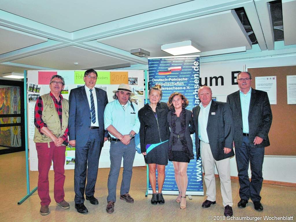 RINTELN (ste). Zum ersten Mal wurde jetzt in Rinteln die Landestagung der Deutsch-Polnischen Gesellschaften in Niedersachsen ausgerichtet und während man sich auf deutscher Regierungsebene mit der PIS-Partei in Polen nicht gerade "grün" ist, wird die Arbeit auf regionaler und lokaler Ebene erfolgreich mit Partnerschaften wie zwischen Rinteln und Slawno gepflegt. Harm Adam, stellvertretender DPG-Landesvorsitzender: "Wir müssen lernen, miteinander zu kooperieren und bewahren, was wir uns an Freundschaften erarbeitet haben." Unter den Gästen auch der preisgekrönte Romanautor Artur Becker. Er rief dazu auf, weniger die Nationalität im Pass als den Menschen in den Fokus der Betrachtungen zu stellen. Mit dem Gymnasium Ernestinum war als Tagungsort eine Europaschule mit internationalen Kontakten gewählt worden, die auch schon partnerschaftlich mit Schulen in Slawno zusammengearbeitet hat. Karin Kaper und Dirk Szuszies zeigten dann Ausschnitte aus Film "Wir sind Juden in Breslau", mit dem sie bereits international viel Anerkennung ernteten. Darin kritisieren sie auch die derzeitige Regierungspolitik in Polen, die Geschichte nach ihrem eigenen Gutdünken interpretiert. Schriftsteller Artur Becker las dann aus seinem neuesten Werk und ging hart ins Gericht mit Politikern wie dem AfD-Mann Alexander Gauland: "Er macht aus der Geschichte eine Farce, eine Komödie!" Ein Lob sprach er dem Rintelner Verein für Städtepartnerschaften und dessen Arbeit für die Deutsch-Polnische Freundschaft aus: "Ihre Arbeit ist enorm wichtig. Bleiben Sie am Ball!" Foto: privat