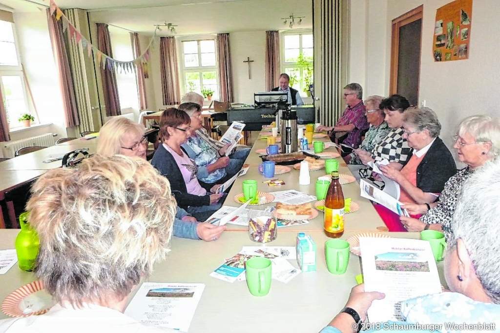 DECKBERGEN (ste). Der erste "mobile Kaffeeklatsch" in diesem Jahr fand in Deckbergen statt und damit werden die Ortsbesuche fortgeführt, die im letzten Jahr von der Stadt Rinteln, dem Seniorenbeirat und der Stiftung für Rinteln begonnen wurden. Die Überlegung, dass Menschen aus anderen Ortsteilen die Besonderheiten und Schönheiten der Ortschaften näher kennenlernen können, stand dabei ebenso im Vordergrund wie das gegenseitige Kennenlernen. Pastor Matthias Mau freute sich über den Besuch im historischen Pfarrhaus von 1799 und ließ es sich nicht nehmen, die Gruppe musikalisch zu begleiten als einige bekannte Lieder angestimmt wurden. Zum Abschluss geleitete er die Gruppe durch die St. Petri Kirche, deren Ursprung bereits auf das 12. Jahrhundert zurückgeht. Die Teilnehmer erfuhren viel über die Historie und die Entwicklung der Ortsteile Deckbergen, Schaumburg und Westendorf. Mit Gedichten und humorvollen Einlagen gestaltete Ulrich Kipp den Vortrag und klärte darüber auf, wie die Unabhängigkeitsstraße in Westendorf zu ihrem Namen kam und warum Zölle damals wie heute eine wichtige Rolle spielen. Der Kuchen wurde von der Bäckerei "Scholz" und der Stiftung für Rinteln gespendet. Die nächsten Termine für den "Mobilen Kaffeeklatsch" stehen bereits fest. Am 22. August in Goldbeck und am 10. Oktober in Möllenbeck jeweils in der Zeit von 14.30 bis 16.30 Uhr. Die Veranstaltungen sind kostenlos. Jeder ist willkommen. Foto: privat
