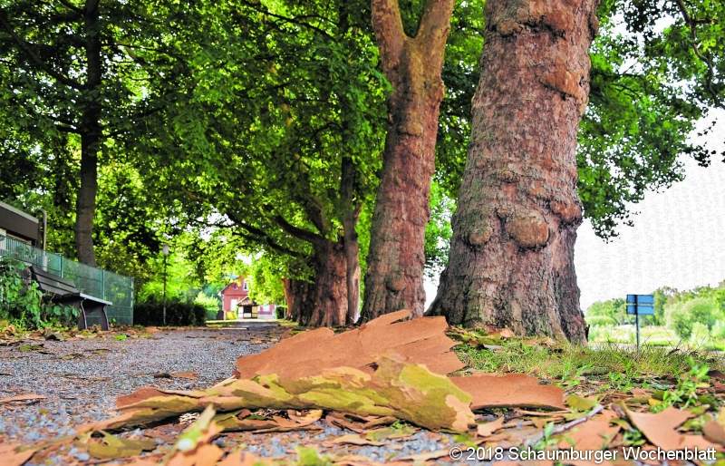 RINTELN (ste). Platanen sind widerstandsfähige Bäume und kommen mit den Bedingungen in der Stadt besser klar als viele andere Sorten. Auch die derzeitige Hitze und langanhaltende Trockenheit macht den Platanen nichts aus. Auf die Idee dazu könnte man kommen, wenn man Rintelns schöne Platanenallee an der Hartlerstraße sieht, denn derzeit werfen sie in großen Stücken ihre Borke ab und darunter kommt eine schöne, gelbliche Rinde zum Vorschein. Was dahinter steckt? Der Platane wird es regelrecht zu eng in ihrer Haut und die "Häutung" ist ein Zeichen dafür, dass es den Bäumen gut geht. Für Baumfachleute ist das Abwerfen der alten Haut ein gutes Signal, denn je mehr die Platane abwirft, desto stärker war ihr Wachstum. Die abfallende Borke zeugt von einer hohen Vitalität der Bäume, denen Hitze wenig ausmacht. Auf der griechischen Insel Kreta steht eine Platane, die seit geschätzten 2.500 Jahren der Hitze trotzt. Foto: ste