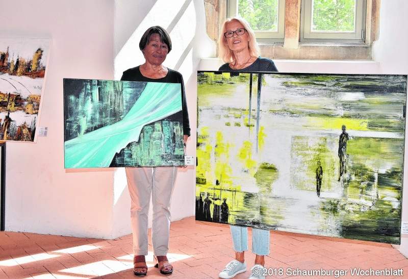 MÖLLENBECK (ste). Unter der Überschrift "Kunst im Kloster" stellen die beiden Künstlerinnen Lonny Deppe und Renate Gottschalk noch bis zum 26. August im Winterrefektorium des Möllenbecker Klosters rund 50 ihrer Werke aus. Deppe arbeitet in ihrem Atelier in Meerbeck vorwiegend mit Rakel und Spachtel und in der Hauptsache abstrakt. Renate Gottschalks Werke sind vorwiegend mit Pinsel und Spachtel gearbeitet. Die Bückeburgerin malt sowohl abstrakt als auch gegenständlich. Bereits im letzten Jahr hatten beide mit Erfolg im Klosterrefektorium ausgestellt und sie schätzen insbesondere die tolle Atmosphäre im Ausstellungsraum und die große Zahl der kunstinteressierten Besucherinnen und Besucher. Geöffnet ist die Ausstellung samstags und sonntags von 11 bis 17 Uhr und natürlich kann man die Werke auch käuflich erwerben.Foto: ste