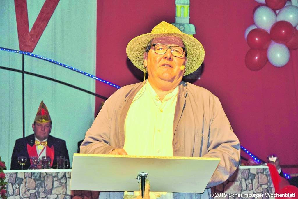 RINTELN (ste). Ende, Schluss, Aus und vorbei! Der Brückentorsaal ist (vorerst) Geschichte. Mit der Prunksitzung des Rintelner Karneval endet die Ära des Saals, der zuletzt nur noch mit einer besonderen Brandschutzwache betrieben werden durfte. Die Karnevalisten nahmen natürlich diesen Umstand aufs Korn und stellten gleich ins Foyer eine handbetriebene Kübelspritze als Hohn und Spott auf die nach Verwaltungsmeinung plötzlich aufgetretenen Brandgefahren. Ein dickes Dankeschön des Karnevals, ganz ohne Hohn und Spott, galt allerdings den acht Feuerwehrleuten, die sich im Saal verteilten und peinlich genau darauf achteten, dass die Notausgänge immer frei blieben und niemand offenes Feuer machte. Den Ausstieg aus den Veranstaltungen im Saal titelten die Karnevalisten mit "Brüxit" und Klippenturmwirt Jörg Riechert zeigte ungeahnte Qualitäten in der Bütt als "Landmann". Er zeichnete sich auch verantwortlich für das diesjährige Motto: "Da fällt mich doch der Sack von'n Wagen!" Riechert hatte für Hans-Hermann Stöckl die Bütt übernommen, denn der "Nachtwächter" erklärte seinen Rückzug aus dem Wächteramt. Seine spitzfindigen Texte hatten über Jahre hinweg den Finger tief in die Wunden heimischer Politik gelegt und Riechert knüpfte daran an. Neben dem Rathaus mit seinem beschworenen Brandschutzwahn bekam auch das Vehlener Krankenhaus sein Fett weg: Man sollte schon genau aufpassen, welches Gliedmaß operiert werden müsse, damit es am Ende nicht das falsche war. Der Erfolg der "Klosterelfen", die wieder einmal "Standing Ovations" bekamen, basiert auf dem Gegensatz des grazilen Tanzes mit der robusten Männlichkeit der Akteure. Feine Bewegungsabläufe paaren sich bei ihnen mit starken Bäuchen, spitzfüßiges Ballett mit Schuhgröße 46 und weißen Socken. Die Mischung ist brüllend komisch und der Name täuscht über die behaarten Männerbrüste hinweg, die unter den bunten Hawaihemden stecken. Echte Elfen mit richtig grazilem Tanz gab es bei der Vorstellung natürlich auch noch. Der Saal war ausverkauft, die Stimmung unter den zumeist kostümierten Gästen war prima und was jetzt nach dieser Vorstellung mit dem Karneval passiert, steht noch in den Sternen. Der Frauenkarneval denkt über eine Zeltveranstaltung nach und auch mit dem RCV wird es weitergehen; wo, das steht noch in den Sternen. Und noch etwas fiel auf: Am Ende wollte jeder der Letzte sein, der den Saal verlässt; damit kann man schon Geschichte schreiben.Foto: ste