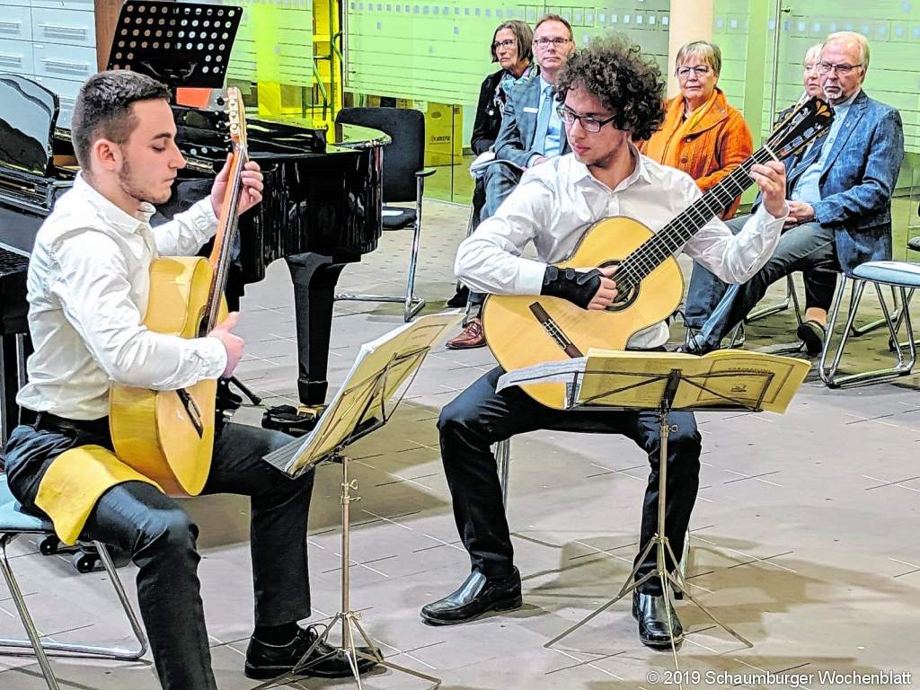 RINTELN (km). Mit tollen Leistungen haben jetzt abermals Schülerinnen und Schüler der Kreisjugendmusikschule buchstäblich aufhorchen lassen: Beim Regionalwettbewerb "Jugend musiziert" in Syke konnten sich elf junge Schaumburger in ihren Kategorien für den Landeswettbewerb qualifizieren - davon neun mit ersten Plätzen. Beim Konzert in der Schalterhalle der Sparkasse am vergangenen Freitag nötigten dem Publikum durchweg reife Leistungen bei allen Darbietungen aufrichtigen Applaus ab. Als Conferencier kündigte Lutz Göhmann, der Leiter der Kreisjugendmusikschule, das jeweilige Programm der jungen Interpreten an. Das Auditorium zeigte sich beeindruckt von der künstlerischen Qualität der zum Teil noch sehr jungen Leute. Während das Klavier in früheren Jahren noch eindeutig zu den dominierenden Instrumenten im Programm zählte, waren die Instrumente diesmal so breit gestreut wie selten zuvor. Zum Auftakt des Konzertes intonierten zunächst Olivia Wray (am Flügel) und Paula Möller (Kontrabass) zwei populäre Kompositionen von Franz Schubert und Georg Philipp Telemann. Auf einem eher seltenen Blasinstrument, dem Euphonium, spielte Meiko Schöps in der Folge eine Romanze von Leroy Ostransky, am Flügel begleitet von Lutz Göhmann. Viel Applaus gab es auch für die Vorträge der Gitarristen Sean Wellmann und Fatbardh Prengjoni, Antonia Frick (Violine), Luisa Göhmann (Gesang) und Kilian Steinbeck (Cello). - Ursprünglich ins Leben gerufen, um den einst eklatanten Mangel an qualifiziertem Orchesternachwuchs zu kompensieren, kann "Jugend musiziert" mittlerweile auf eine über 50-jährige Tradition zurück blicken. Mehr als einer halben Million Kindern und Jugendlichen wurde im Lauf der Jahre eine Bühne geboten. Inzwischen ist der Wettbewerb von einem vielfältigen Instrumentenspektrum und breit gefächerter Literatur geprägt, die von alter bis zur neuen Musik reicht und auch Elemente der Popmusik nicht mehr ausklammert. Foto: km