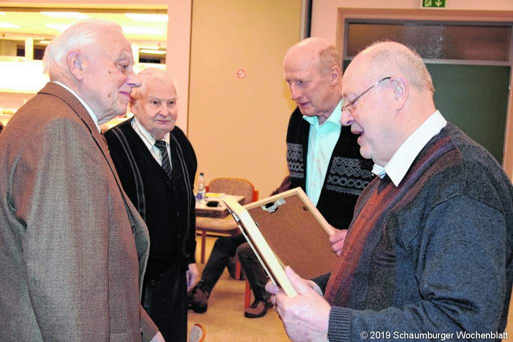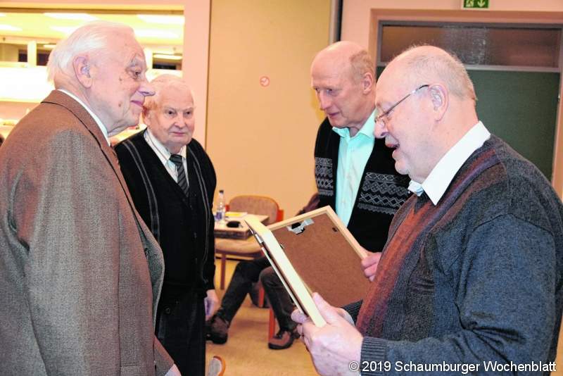 EXTEN (ste). Wenn in den Anfangsjahren von Dirigent Heinz Sievert im damaligen Männergesangverein Exten mal jemand fehlte, dann war das kein Malheur. Genügende Besetzung der einzelnen Stimmen machte den vierstimmigen Männergesang möglich. Heute hat sich der Verein schon seit zwei Jahren auch für Frauen geöffnet, konnte damit einen Untergang des Gesangs im Dorf entgehen und schafft es dennoch nicht, mehrstimmig zu singen. Doch Heinz Sievert, der mit 15 Jahren in den Verein eintrag und seit 70 Jahren Mitglied ist, ist zuversichtlich, dass das Singen mit Musikbegleitung von moderneren Liedern den Bestand noch über Jahre sichern kann. Dennoch ist sich der selbsternannte "Methusalem Chorleiter" sicher: "Es hat uns erwischt!" Seine Zuversicht nährt sich allerdings aus der großen Disziplin, die es im Extener Verein gibt: "So etwas habe ich noch nicht erlebt!" Und weil es ihm so Spaß macht, den Verein zu dirigieren, macht er das seit seinem 70. Geburtstag kostenlos; er besteht allerdings darauf: "Wir werden kein Bumm-Bumm-Bumm singen!" Vorsitzender Dieter Schneider konnte in seinem Jahresbericht weitere Jubilare ehren. Neben Heinz Sievert ist auch Heinrich Krüger 70 Jahre im Verein und auch Helmut Luthe. Seit 60 Jahren ist Heinz Meier den Sängern treu. 25 Jahre gehört Hartmut Giese zum Verein. Nach 33 Jahren Vorstandsarbeit und 24 Jahren als Erster Vorsitzender gibt Dieter Schneider sein Amt ab an Angelika Kessler. Ihr zur Seite steht Willi Mohrmann. Sie beide müssen nun die Aufgabe meistern, die 19 Aktiven (13 Männer und sechs Frauen) Stück für Stück um weitere Mitglieder aufzubauen. Die Stimmung im Verein ist gut und das spielt dem neuen Vorstand in die Karten, denn der Verein feiert in diesem Jahr seinen 140. Geburtstag. Doch allen ist auch klar: "Ohne neue Mitglieder werden wir den 150. Geburtstag des GV Exten v. 1879 wohl nicht feiern können!" Foto: ste