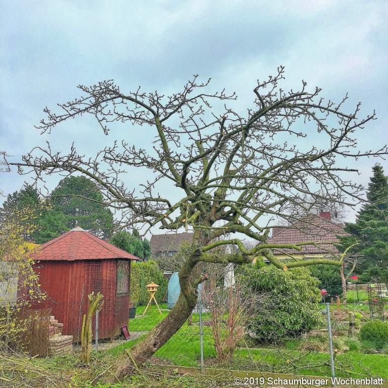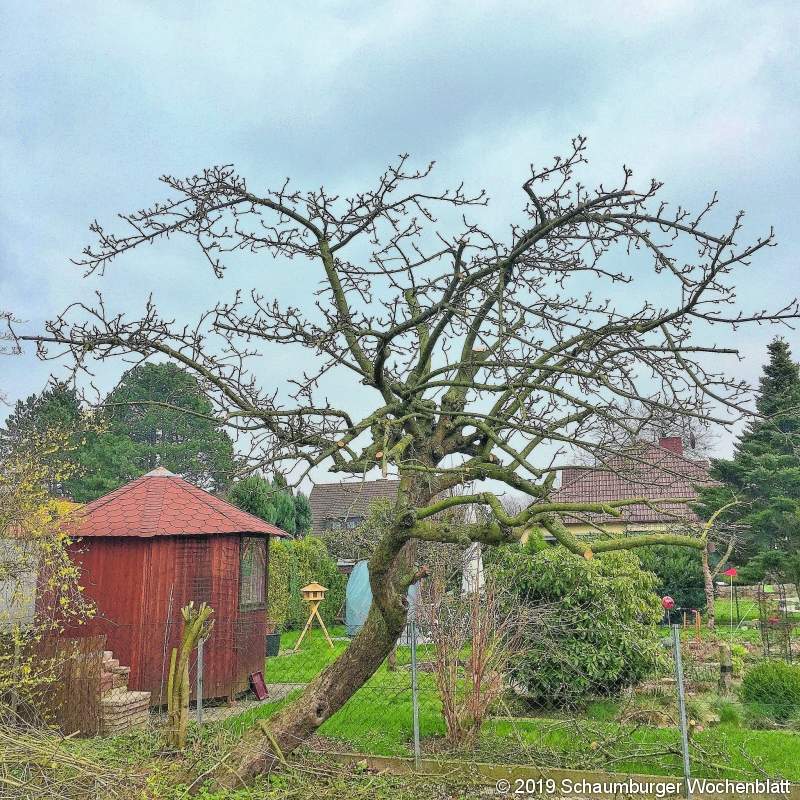 RINTELN (ste). Der Winterobstbaumschnitt des Obst- und Gartenbauvereins Rinteln fand in diesem Jahr im Garten von Frau Appel an einem etwa 40 Jahre alten Apfelbaum statt, der sich auch noch in einer Schieflage befand. Auch an so einem Baum lohnt sich noch ein Schnitt, erklärte Frank Timmermann, der vor 27 interessierten Zuschauern den Baum schnitt. Ein älterer Baum sollte alle drei bis fünf Jahre geschnitten werden. Gerade bei diesem Apfelbaum wurde beim Schnitt viel Mut aufgebracht. Die Äste und Zweige auf der Neigungsseite wurden stärker gekürzt als sonst üblich, um den Stamm und die Wurzeln etwas zu entlasten. Der Winterschnitt ist die übliche Schnittart, durch ihn soll sich Triebentwicklung und Fruchtknospenentwicklung die Waage halten. Die Fruchtknospen bringen die Früchte für das kommende Jahr, während die Triebe erst im folgenden Jahr Fruchtknospen ansetzen. Das Wachstum der Zweige und Äste wurde außerdem noch durch Sträucher behindert, die in den Baum hineinwachsen. Sie wurden entfernt, damit sich der Baum frei entfalten kann. Apfel- und Birnenbäume sollten nach Meinung des Gartenbauvereins bis Ende März geschnitten werden. Erfolgt der Schnitt zu früh und es kommt anschließend noch eine stärkere Frostperiode, kann der Baum durch die offenen Schnittstellen geschädigt werden. Die Äste werden immer schräg, direkt am Stamm oder Ast abgeschnitten, es dürfen keine Stummel stehenbleiben. Die Schnittstellen sollen nicht mit Baumwachs abgedichtet werden, da sich an diesen Stellen Schädlinge und auch Pilzbefall einstellen können, die den Baum dann in Mitleidenschaft ziehen. Beim Schnitt ist auch darauf zu achten, dass der Baum eine gewisse Form behält. Beim Kürzen von Fruchtholz ist zu achten, dass man dort abschneidet, wo das Auge sowie die Fruchtknospen nach unten zeigen. Foto: privat