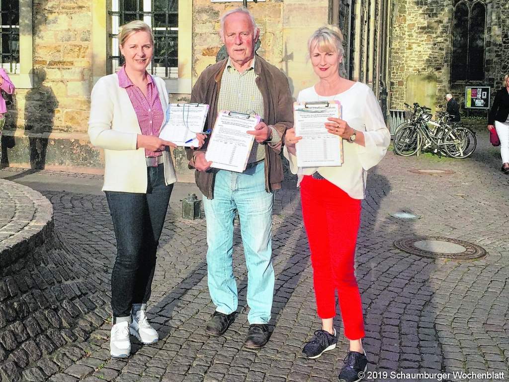 RINTELN (ste). Ines Rauch, Claudia Döpke und Eberhard Kirsch zeigen sich zuversichtlich, denn das Bürgerbegehren ist aus ihrer Sicht gut gestartet und man ist überrascht über die gute Resonanz bei den Mitbürgern von Rinteln. Mitmachen dürfen alle wahlberechtigten Rintelner über 16. Jahren. "Zwischenzeitlich beteiligen sich schon insgesamt 68 Geschäfte und Helfer aus der Bürgerschaft gehen weiterhin fleißig von Tür zu Tür und sammeln Unterschriften", freuen sich die drei Hauptorganisatoren. Aber auch in den Geschäften und Restaurants ist die Nachfrage nach den ausliegenden Listen groß. "Es wird sicher noch ein paar Wochen dauern, bis alle Haushalte befragt werden konnten, wir sind fleißig dabei und wir freuen uns über jede Unterschrift!", so Ines Rauch und Claudia Döpke, "... unser Ziel ist es, mehr als 2.122 Unterschriften zu bekommen". Es geht ihnen nicht darum, am Status Quo festzuhalten, also in diesem Fall einen altgedienten Saal aufrecht zu erhalten, sondern grundsätzlich um den Standort. "Es ist uns wichtig, dass der Saal in Mittelpunkt der Stadt bleibt, um eine lebendige Innenstadt zu bewahren!", so Eberhard Kirsch, der als engagierter Bürger von Rinteln seit Jahrzehnten maßgeblich die kulturellen Ereignisse in Rinteln begleitet und gefördert hat. Foto: privat