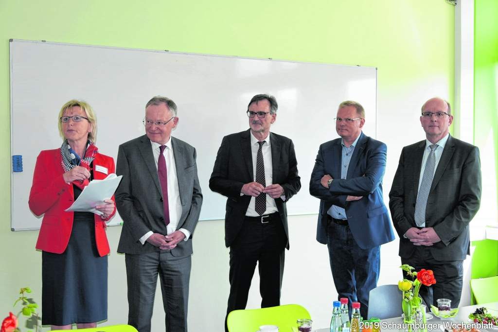 RINTELN (ste). Im Rahmen der beruflichen Bildung besuchte Ministerpräsident Stephan Weil die Berufsbildende Schule (BBS) in Rinteln am Standort Dauestraße. Bereits zum zweiten Mal ist Weil (SPD) Gast der BBS. Dieses Mal konnte er in einem Zug der am gleichen Tag in den Dienst als Schulleiterin getretenen Lita Gooßen gratulieren. Sie übernahm das Amt von dem im Januar verabschiedeten Herbert Habenicht. Hintergrund des Besuches von Weil war jedoch die Woche der beruflichen Bildung, in der die Mitglieder des Kabinetts der Niedersächsischen Landesregierung für die berufliche Bildung werben. Diese soll als Alternative zu einem Hochschulstudium thematisiert werden und ist damit auch eine Option für leistungsstarke Schülerinnen und Schüler. Die Landesregierung möchte damit das politische Bekenntnis zur Gleichwertigkeit von beruflicher und akademischer Bildung bekräftigen. Einen Einblick gab es für Stephan Weil im Jahrgang elf, wo Schülerinen und Schüler gemeinsam mit den Lehrkräften Daniel Harting und Eike Blohm demonstrierten, wie der Unterricht mit den Tablets gestaltet wird und wie diese zum Einsatz kommen. Cooperatives offenen Lernen (kurz "CooL") ist hier einer der Schwerpunkte. Innerhalb von sechs Unterrichtsstunden in der Woche werden Aufgaben nicht nur im eigenen Tempo bearbeitet, sondern hier steht auch noch für die Lehrkräfte mehr Zeit für individuelle Hilfestellungen bereit. Mit den Tablets haben die Schüler außerdem die Möglichkeit, sich mit dem Whiteboard im Klassenraum zu verbinden, was sie gleich auch nutzten, um den selbst gedrehten Trailer zum Thema Europawahl den Politikern vorzuspielen. Alles dies ist natürlich nur möglich, wenn Lehrkräfte für die Art des modernen Unterrichts begeistern und die nötigen Mittel hierfür zur Verfügung gestellt werden. Günter Potthast als stellvertretender Schulleiter machte gegenüber Weil klar, dass es noch ein langer Weg sei, bis die anstehenden Investitionen getätig seien und auch die Werkstätten der Schule auf "Industrie 4.0" umgestellt sind. Auch braucht es noch Zeit, bis die Jahrgänge zwölf und 13 als Tabletklassen funktionieren. Dafür bedarf es auch noch Weiterbildungen für die Lehrkräfte und die nötige Infrastruktur. Foto: ste