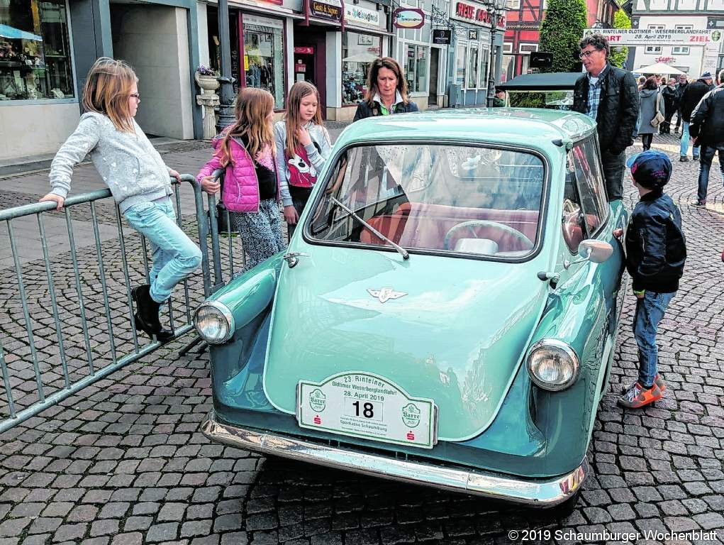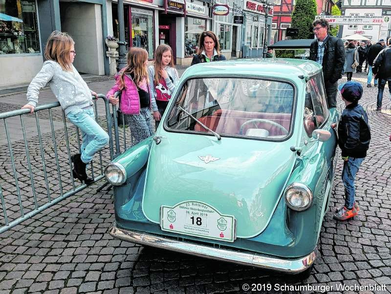 RINTELN (km). Über eine wieder rundum gelungene Veranstaltung konnte sich der Motorclub Rinteln e.V. im ADAC freuen: Die "23. Rintelner Zuverlässigkeitsfahrt" für Oldtimer lockte am Sonntag hunderte von Zuschauern auf den Kirch- und Marktplatz und in die Fußgängerzone, von wo aus die Fahrzeuge auf ihren Parcours über rund 150 Kilometer starteten. Bei passablem Frühlingswetter ging die Fahrt mit diversen Prüfungen diesmal schnurstracks nach Westen. Zu den Etappenzielen auf dem pittoresken Rundkurs gehörten unter anderem Möllenbeck, Bentorf, Exter, Falkendiek, Lippinghausen, Enger, Riemsloh und schließlich Melle. Und die optische Harmonie der Oldtimer wurde durch die überwiegend tadellos funktionierende Technik gleichsam veredelt: Gelegentlich sprang zwar mal ein Motor nicht an, am Ende kamen aber praktisch alle der 135 Fahrzeuge von anno dazumal wieder ins Ziel - auch der 94 Jahre alte Buick Roadster von Kerstin und Wieland Teßmer, der als ältestes Fahrzeug gegen 8.30 Uhr mit der Startnummer 1 auf dem Marktplatz gestartet war. Bei der "touristischen Ausfahrt" für zwei-, drei- und vierrädrige Oldtimer bis zum Baujahr 1975 dominierten diesmal erneut vor allem die Schmuckstücke aus der Nachkriegszeit: Allein 75 Piloten waren am Steuer von Fahrzeugen aus der Zeit von 1961 bis 1975. Zwischen den besonderen Raritäten fanden die guckenden und knipsenden Schaulustigen ebenso viele Luxuskarossen (Mercedes, Jaguar, Porsche, Facel Vega, Chevrolet oder Maserati) - die auch heutzutage noch eine mehr als gute Figur machen - wie zahllose kuriose Zwerge à la Isetta, Fiat 500 oder Zündapp Janus. Bei der Siegerehrung auf dem Marktplatz konnten sich am Ende Dietrich Ballin und Horst Deppe mit ihrem Austin Healey (Baujahr 1958) über den großen Pokal der Barre-Brauerei für den Gesamtbesten freuen. Mit einer Strafe von 24 Punkten waren die Gewinner den meisten ihrer Konkurrenten am Ende klar überlegen. Den Pokal für den besten Motorradfahrer im Starterfeld der Vehikel aus der Pionierzeit sicherte sich Renke und Johanna Frerichs (BMW R25/3, Baujahr 1955), die ihre Konkurrenz um Längen hinter sich lassen konnte. Und als bestes Damen-Team schließlich wurden Annette und Lea Hohmeier (BMW Isetta von 1957) mit einem Pokal bedacht Foto: km