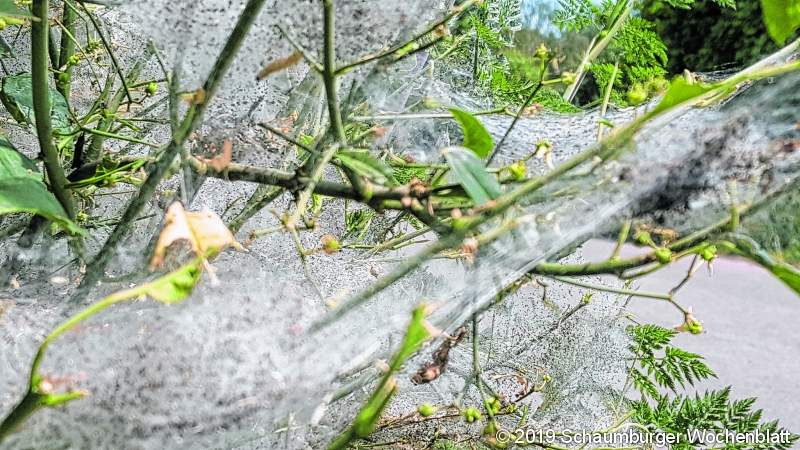 Unheimliche Netze hüllen sogar ganze Büsche ein