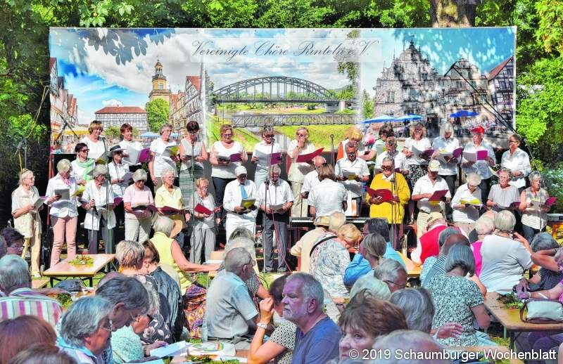 RINTELN (ste). Wenn am kommenden Wochenende (31. August) "Weser-Tekk" die Beats für die junge Generation im Freibad von 15 bis 0 Uhr auflegt, dann wird von den Besuchern des Blumenwallfestes wohl niemand dabei sein. Andersrum war auch die junge Generation im Blumenwall nicht vertreten und die Jubelveranstaltung zum 20. "Singenden, klingenden Rosengarten" blieb der Ü-50-Fraktion vorbehalten. Die jedoch hatte beste Voraussetzungen für einen gelungenen Sonntag. So waren die Temperaturen im Optimalbereich, das Programm umfasste stolze zwei Seiten und die Stimmung stieg dank bester Versorgungslage schnell in eine wohlige Mischung aus satter Zufriedenheit und der Euphorie des Mitsingens. Denn genau das hatten die Vereinigten Chöre als Organisator sich auch gewünscht und mit "Funiculi, Funicula" auch alte Ohrwürmer im Gepäck, die man ebenso laut wie schön mitschmettern konnte. Auch das "Chianti-Lied" erfreute sich großer Beliebtheit. Eingestimmt auf den Sonntag wurde die Festgesellschaft im schönen Rosengarten von Pastorin Sabine Schiermeyer, Pastor Heiko Buitkamp und Kreiskantorin Daniela Brinkmann. Danach ging es Schlag auf Schlag, oder "Schlager auf Schlager". Vom Chorverband Niedersachsen-Bremen grüßte der Vizepräsident Detlef Nietsch aus Ronnenberg die Besucher und freute sich über die großartige Location und die vielen teilnehmenden Chöre, die allesamt auf eine hervorragende Resonanz bei den Gästen blicken konnten. VCR-Präsident Franz-Josef Stöckl startete mit seinen Sängern dann in ein Programm, dass es in sich hatte. "Music is my life" hieß es gleich zu Beginn und genau nach diesem Motto verlief auch der Rest des Tages. Auf den beiden Bühnen gaben sich die Chöre und Orchester die Klinke in die Hand, unter ihnen der Musikzug der Feuerwehr Möllenbeck, "Cantati dilettanti" aus Aerzen, der Nikolai-Chor, die Singgemeinschaft Bückeburg, der MGV Engern sowie der GV Polyhymnia & Polypop aus Möllenbeck. Als die Vereinigten Chöre gegen 17 Uhr zum Abschied anstimmten, wollte eigentlich niemand so richtig nach Hause gehen. Die Stimmung war noch prächtig und die Sänger können mit Fug und Recht in ihrer Chronik verbuchen: "Das war ein grandioses Jubiläumskonzert im Rosengarten!"Foto: ste