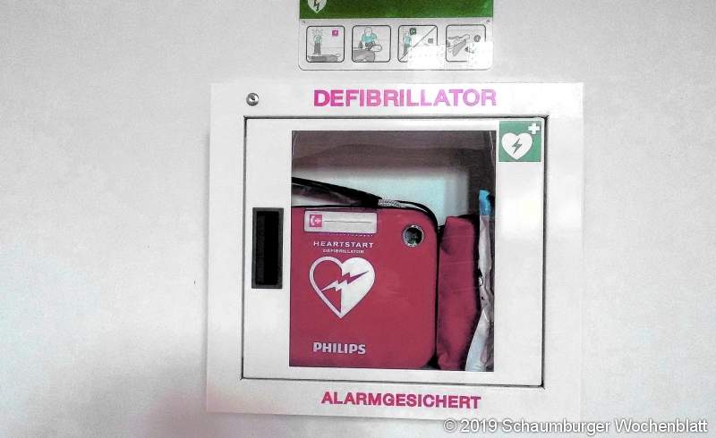 RINTELN (ste). Die Stadt Rinteln hat im Sinne der Bediensteten als auch der Rintelner Bürgerinnen und Bürger sechs automatisierte externe Defibrillatoren (AED) angeschafft, um diese für Notfälle in den Verwaltungsgebäuden vorzuhalten. Die AED-Geräte eignen sich wegen ihrer Bau- und Funktionsweise besonders für Erste Hilfe durch Laienhelfer und sind einfach zu bedienen. Im Falle eines plötzlichen Herztodes, Herzinfarktes oder in Folge von Stromschlägen erhöhen diese die Überlebenschancen von Betroffenen. Wenn man den Defibrillator angeschaltet hat, gibt das Gerät klare Anweisungen: Man soll zunächst einen Notruf absetzen und dann dem Betroffenen seine Oberbekleidung ausziehen. Der Brustkorb muss frei liegen, um die Elektroden auf der Haut zu plazieren. Wohin die Elektroden müssen, ist gekennzeichnet. Sind sie richtig angelegt, erkennt dies das Gerät und beginnt mit seiner analysierenden Arbeit. Dann heißt es: "Nicht mehr berühren!" Ist die Analyse durch, kommt der Elektro-Schock. Vorausgesetzt, es liegt ein Kammerflimmern vor. Auch das erkennt das Gerät selbstständig. Je ein Defibrillator wurde gut zugänglich in den Fluren im Rathaus Klosterstraße 19 und 20, im Bürgerhaus im Erdgeschoss, im Mehrgenerationenhaus und im Baubetriebshof Im Emerten im Erdgeschoss installiert. Foto: privat