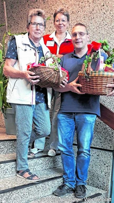 RINTELN (ste). Unter dem Wahlspruch "Spende Blut, rette Leben" stand der Blutspendetermin, den der DRK Ortsverein Rinteln zusammen mit dem Blutspendedienst aus Springe in der BBS Rinteln ausrichtete. 167 Spender waren dem Aufruf gefolgt, darunter auch zehn Erstspender, die dafür mit einem Erstspendergutschein belohnt wurden. Diese werden von der heimischen Geschäftswelt und Gastronomie zur Verfügung gestellt. Blutspendeleiterin Ute Perlick konnte sieben fleißige Mehrfachspender mit einem Korb zum Jubiläum gratulieren: Brigitte Soester 25. Spende, Beate Andritzke Leibig 25.Spende, Manuela Nemitz 25. Spende, Rita Schuster 50. Spende, Andreas Friedrich 75. Spende, Matthias Voges 100. Spende und Ramon Speer 120. Spende. Nach erfolgter Spende konnten sich alle an dem leckeren Buffet laben, das die fleißigen Helferinnen liebevoll hergerichtet hatten. Am 12. November ist die nächste Blutspende in der BBS und das DRK würde sich wieder über viele Spender freuen. Foto: privat Monika Fehse mit Brigitte Soester und Matthias Voges.