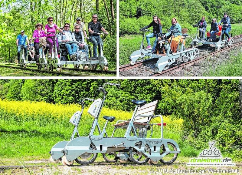 RINTELN (ste). Die Draisine ist auf der schönen Strecke von Rinteln bis nach Alverdissen eine Freizeitgestaltung, bei der man Sportlichkeit und Geselligkeit miteinander verbinden kann. Bis zum 3. November stehen 30 Elektro-Draisinen für einen Ausflug startklar am Bahnhof Rinteln Süd, um zu einer sportlichen Fahrt durch die Natur einzuladen. Besetzt mit maximal vier Erwachsenen starten die Mitfahrer an der Basisstation in Rinteln zu der 18,1 km langen Tour durch die schöne Landschaft des Extertals. Gleichzeitig treten zwei Personen in die Pedale der Fahrrad-Draisinen, während die anderen die Fahrt auf der Sitzbank genießen. An zehn Haltepunkten laden gastronomische Betriebe, Picknickplätze, und Wanderwege zu einer Rast ein. Startzeit für alle Tagestouren ist zwischen 9 und 11.30 Uhr. Dann geht es in Richtung Alverdissen. Egal auf welchem Streckenabschnitt man sich befindet, werden die Draisinen um 14 Uhr gewendet, um bis 17 Uhr zurück zum Rintelner Bahnhof zu radeln. Der Draisinenspaß kostet an Wochentagen 64 Euro, samstags, sonntags und an Feiertagen 69 Euro pro Fahrzeug. Gruppen ab vier Fahrzeugen zahlen in der Woche einen ermäßigten Preis. Informationen und eine persönliche Beratung bei: Pro Rinteln e.V., Marktplatz 7, Telefon 05751-403988 oder unter www.draisinen.de. Foto: ste