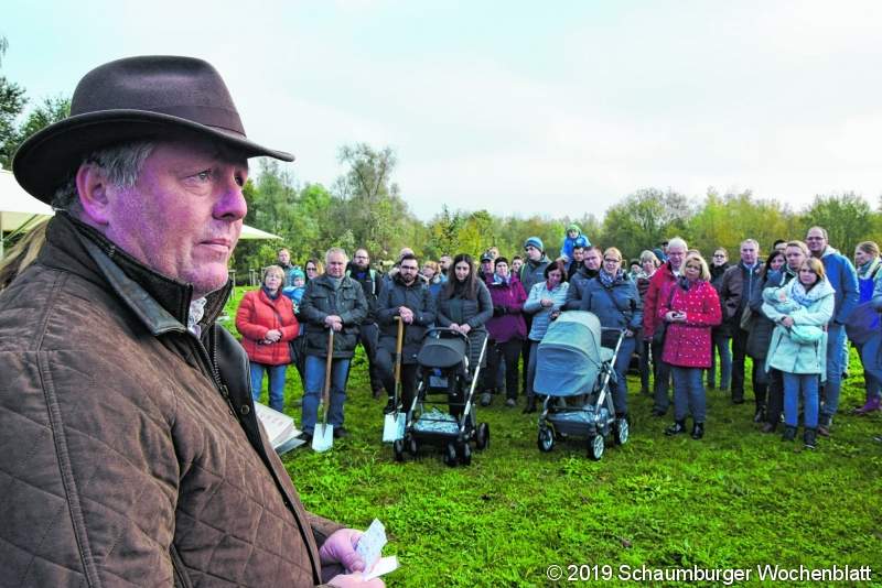RINTELN (ste). Stolz sind die Eltern Berna (25) und Yasin (27) Beran auf ihren Nachwuchs Yunus Imran, der am 10. Mai 2019 das Licht der Welt erblickte. Die beiden türkischstämmigen Rintelner sind eine von 27 Familien, die jetzt am Generationenpark einen Apfelbaum der Sorte "Rheinischer Bohnapfel" für das in diesem Jahr geborene Kind pflanzten. Berna Beran findet die Aktion einfach Klasse für ihr Kind und für die Natur und sie weiß: "In Gesprächen mit meinen Cousinen in der Türkei habe ich erfahren, dass auch dort Bäume für die neugeborenen Kinder gepflanzt werden." Seit 15 Jahren wird in Rinteln jetzt diese Tradition gepflegt und mittlerweile sind es 442 Bäume, die am Generationenpark (hinter dem WEZ und Friedhof) stehen. Über 200 verschiedene alte Apfelsorten sind vertreten, darunter "Goldparmäne", "Schafsnase", "Alkmene" oder auch "Finkenwerder Prinz" und "Prinz Albrecht von Preußen". Für etwa drei Jahre reicht die Fläche noch aus: "Dann müssen wir uns nach einer anderen Fläche umsehen", so Klaus-Ulrich Hartmann als Leiter des Grünflächenamtes. Besonders stolz ist Hartmann darauf, dass durch die Pflanzaktion Rinteln um viele Millionen Blüten reicher geworden ist und zusammengerechnet schon jetzt etwa zehn Tonnen Äpfel von den Bäumen geerntet werden können. Allerdings: "Jahr für Jahr gibt es Menschen, die gleich wannenweise Äpfel klauen", so Hartmann, der die Eltern dazu aufforderte: "Haben Sie ab und zu mal einen Blick auf ihren Baum, bringen Sie eine Kanne Wasser am Anfang mit und ernten Sie ihre Äpfel selbst." Die Millionen von Blüten bringen auch die Imker auf den Plan, für die Klaus Koschnick allen Eltern eine kleine Tüte mit Krokussen und Blausternchen mit auf den Weg gab. Die wurden mit den Bäumen einfach in die Erde gesetzt und bieten schon im nächsten Jahr eine reiche Blütenpracht am Fuße der Bäume. Er freute sich insbesondere, dass am Generationenpark auch eine Info-Fläche der Imker entsteht mit einem kleinen Bienenvolk. Unterstützt wird die Bewirtschaftung der Fläche von der Bingo-Umweltlotterie und geplant ist auch ein "Probiergarten" des Obst- und Gartenbauvereins, bei dem sich Passanten an heimischen Früchten bedienen können. Foto: ste
