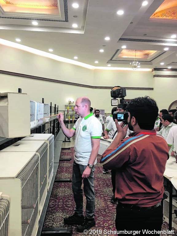 RINTELN/LAHORE (ste). Das hätte sich Oliver Werner (44) aus Rinteln auch nicht träumen lassen, als er seine dreijährige Ausbildung als Zuchtrichter für Großsittiche und Papageien absolvierte. Er wurde jetzt zusammen mit einem Zuchtrichter aus Dänemark und einem weiteren aus Ägypten nach Pakistan eingeladen, um dort bei einer großen Nationalschau Großsittiche und Papageien zu bewerten. Ziel Pakistans ist es, internationale Anerkennung als Vogelzuchtnation zu erhalten und in den Weltverband der Vogelzüchter aufgenommen zu werden. Das, was Oliver Werner, der in Begleitung seines Sohnes Dorian in die 11-Millionen-Stadt Lahore flog, in Pakistan erlebte, schildert er exklusiv für das Schaumburger Wochenblatt. Für Werner war es der erste Auslandseinsatz als Zuchtrichter. In Deutschland reiste er bereits von Nord nach Süd und Ost nach West, um bei einer Vielzahl von Schauen Vögel zu bewerten. Sein nächster Einsatz ist bei der Bundesschau am 22. November in Kassel, wo er hauptverantwortlich ist für die Bewertung von Großsittichen und Papageien. Sieben weitere Zuchtrichter unterstützen ihn dabei. Während Werner bei deutschen Ausstellungen um die 250 Vögel an einem Tag bewerten muss, waren es in Pakistan fast 900 Nymphensittiche, Agaponiden und Großsittiche, die er nach den geltenden Richtlinien in Augenschein nahm: "Eine Mammutaufgabe!" Ende Oktober war es soweit. Über Istanbul flogen Vater und Sohn Werner nach Lahore, stiegen aus dem Flieger und gelangten in den Alama Iqbal International Airport, wunderbar klimatisiert und modern: "Doch sobald wir aus dem Flughafen heraus waren, war es wie mit einem Hammer gegen den Kopf", so Werner, denn Hitze, Luftfeuchtigkeit und Smog machten das Atmen schwer. Eingeladen zu der Nationalschau hatte der Verein "Pakistan Aviculturists Guild", kurz "PAG". Jeder war unglaublich bemüht, es den internationalen Zuchtrichtern im Land so angenehm wie möglich zu machen. "Es war zum einen wie aus 1001 Nacht, zum anderen aber auch ganz schön gruselig an manchen Orten", gestand Werner. Begleitet wurde die Gruppe durchgängig von mehreren Pakistanis, zum Teil, wie die Zuchtrichter feststellen mussten, bewaffnet. Sprachschwierigkeiten gab es nicht: "Mit Englisch kommt man prima durch", so Werner. Froh war er, dass sie immer Fahrer für die Strecken in der Stadt zur Verfügung gestellt bekamen: "Selbst fahren ist so gut wie unmöglich; auf dreispurigen Fahrbahnen fahren in der Regel fünf Autos nebeneinander und zwischendrin sind ohne Ende Motorräder!" Am ersten Tag war Sightseeing angesagt. Das Weltkulturerbe "Lahore Fort" war gigantisch in seinen Ausmaßen und nicht weniger beeindruckte die Reisegruppe die größte Moschee der Stadt, die Badshahi-Moschee, die 100.000 Menschen zum Gebet fasst. Beeindruckend auch ihr "Promi-Status": "Wir sind mit unseren Begleitern an schier endlosen Menschenschlangen vorbeigefahren, haben direkt vor der Moschee geparkt und wurden sofort umringt von Pakistanis, die Selfies mit uns machen wollten!" Dann der Tag der Bewertung. Auch hier Superlative: "Überall waren Sicherheitskräfte im Liberty Castle!" Dort, in einer der schönsten Locations in Lahore, fand die Vogelschau statt. Lars Voss aus Dänemark, Yasser Wahid aus Ägypten und Oliver Werner aus Deutschland bewerteten die Vögel: "Ich war von mittags bis Mitternacht im Dauereinsatz", so Werner, der am Ende die entsprechenden Rosetten für die Sieger überreichte. Auch hier die nächste Überraschung. Während in Deutschland die Unterlegenen ihre Platzierung klaglos hinnehmen, wurde Werner freundlich gefragt, ob man nicht doch "...etwas machen könne", damit der Vogel des Züchters auch so eine Auszeichnung erhält und nicht traurig sein müsse. Doch auch das Knistern von Geldscheinen konnte Werner nicht umstimmen und der Züchter ging leer aus. Was Oliver Werner feststellte: "Die Qualität der ausgestellten Tiere war absolut top!" Viele Pakistanis kaufen ihre Vögel bei europäischen Züchtern oder haben bereits Nachzuchten von ihnen. Was auch auffiel: "Im gesamten Saal lag Teppichboden aus, es wurde geraucht, die Kippen auf den Boden geworfen und es spielte Live-Musik!" Szenarien, die bei deutschen Ausstellungen unmöglich sind. Auch die Dimensionen, in denen pakistanische Züchter denken, ist hier unvorstellbar: "Der Präsident dort hat alleine schon 1.000 Nymphensittiche, 700 Wellensittiche und 500 Agaponiden, also kleine Papageien!" Solche Ausmaße kennt man hier nur in Zoos. Als Dorian und Oliver Werner nach vier Tagen Reise wieder in Deutschland landeten und einen Temperatursturz von 30 Grad auf vier Grad verkraften mussten, blieben eine Menge Eindrücke, die sie nie vergessen werden: "Für das nächste Jahr haben wir schon wieder eine Einladung", freut sich Werner. Foto: privat