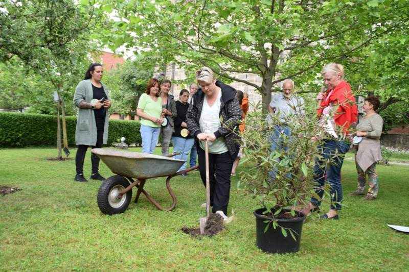 Palliative-Care-Pflegekräfte pflanzen „Wunschbaum“ im Klostergarten