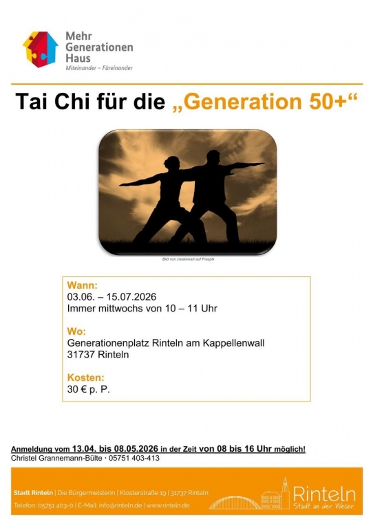 Die Anmeldung zum Kurs ist vom 13.04. bis 08.05.2026 in der Zeit von 08.00 bis 16.00 Uhr möglich: Christel Grannemann-Bülte, 05751 403-413.