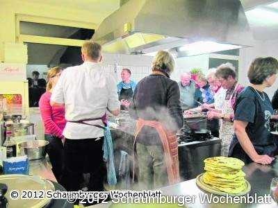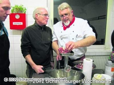 Schon bei der Vorstellung des Menüs lief den Teilnehmern das Wasser im Mund zusammen: Klare Rehsuppe mit Zitronengras, dazu frisches Brot aus der Gußpfanne; geschmorte Rehschulter und -keule an Ingwer-Möhrchen und Zitronenpüree; gebratenes Rehfilet und Frischlingsfrikadelle mit Zitronenpfeffer und süß-saurem Schalotten-Chutney, sowie Zitronenquark mit weißer Schokolade und Orangenfilets. Bei der Zubereitung des Menüs bekam dann jeder Teilnehmer eine Aufgabe, sodass am Ende das Viergängemenü auf dem Tisch stand. So ein umfassender Abend dauert deswegen auch seine Zeit: zwischen 22 und 23 Uhr sind die Teilnehmer in der Regel mit Essen und Abwaschen fertig. "Das ist wie in der Jugendherberge, alle packen mit an", erzählte Lothar Seidel begeistert von der Atmosphäre, die bei den Kursen aufkommt. Der gelungene und gesellige Abend bei köstlichen Wildgerichten wurde für die Teilnehmer nicht zuletzt durch die Herzlichkeit der Gastgeber zu einem Erfolg. Allen Neugierigen versprach Lothar Seidel auch im nächsten Jahr wieder Kochkurse. "Wer zudem gerne einmal Schaumburger Wild kosten möchte, hat dazu in 26 Restaurants in Schaumburg Gelegenheit. Abgesehen davon bekommt man das Fleisch über Kontakte mit dem Kreisforstamt, der Jägerschaft Schaumburg und allen Jägern des Landkreises", so die Küchenmeister.