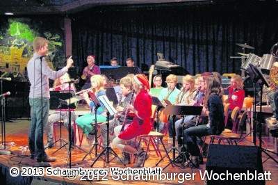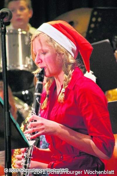 STADTHAGEN (jl). "Jingle Bells" im Ohr, kleine Weihnachtsmänner vor den Augen und eine wohlige Wärme am ganzen Körper – Das diesjährige Weihnachtskonzert der IGS Schaumburg hat wahrlich alle Sinne auf die Festzeit eingestimmt. Sitzend, hockend oder stehend erlebten die Besucher das traditionelle Konzert in der vorweihnachtlichen Zeit. Denn das Forum der IGS war nicht nur bis auf den letzten Stuhl, sondern sogar bis auf den letzten Stehplatz besetzt.