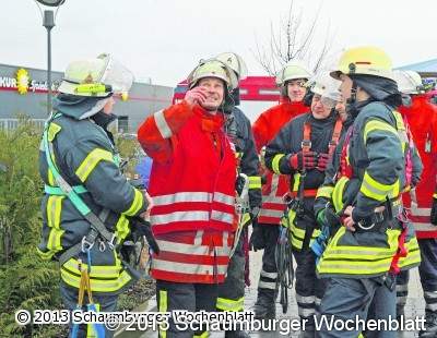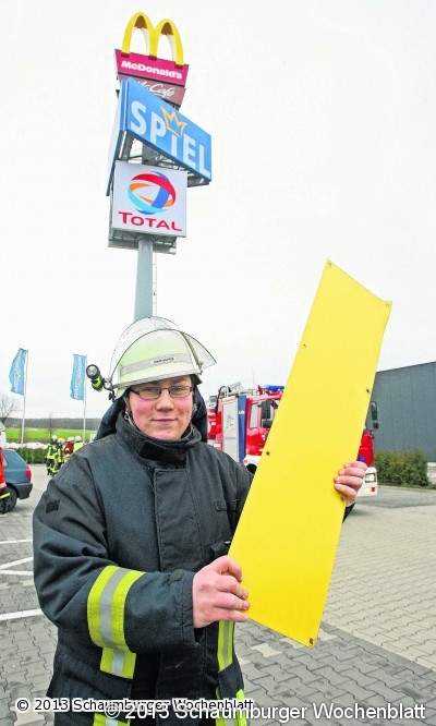 Durch die veränderte Oberfläche des Objekts konnte der starke Wind besser angreifen und destabilisierte das Schild, sodass Gefahr durch weitere, sich lösende Bleche bestand. Nach Erkundung der Einsatzstelle vom Boden aus wurde die Drehleiter der Feuerwehr Barsinghausen und gegen 12.30 Uhr die Fachgruppe Absturzsicherung der Stadtfeuerwehr auf Nachforderung der Ortsfeuerwehr Bantorf alarmiert. Da das Objekt mit der Drehleiter jedoch nicht erreicht werden konnte, legten zwei speziell ausgebildete Kameraden Kletterausrüstung an, die gegen Absturz sichert, um den Werbemasten zu besteigen und einen eventuellen Zugang zum defekten Schild zu finden. Nach Erkundung von einem Plateau aus wurde festgestellt, dass es seitens der Feuerwehren aus Barsinghausen, keine Möglichkeiten gab, auch aufgrund des starken Windes, das Schild zu erreichen. Die Feuerwehr Bantorf blieb mit der Polizei vor Ort um das weitere Vorgehen zu klären und sperrte den Platz um den Masten weiträumig ab. Gegen 17 Uhr wurde dann, durch den Stadtbrandmeister Dieter Engelke, die 54 Meter Teleskopmastbühne der Berufsfeuerwehr Hannover angefordert. Diese erreichte auch die Einsatzstelle, konnte dann aber wegen einem technischen Defekt nicht eingesetzt werden. Nachdem nun weiter unklar war, wie die Gefahr zu beseitigen ist, wurde Peter Jühlke, Leiter Fachdienst I/1 Ordnungswesen und Gefahrenabwehr der Stadt Barsinghausen verständigt. Nach Beratung durch Eigentümer, Stadt, Feuerwehr und Polizei, gelang es dem Eigentümer einen Monteur der Aufbaufirma aus Hildesheim und eine 70 Meter-LKW-Arbeitsbühne eines hannoverschen Unternehmens nach Bantorf zu holen. Nachdem alle Vorbereitungen abgeschlossen waren, fuhr der Monteur um 22 Uhr im Korb nach oben. Bereits 30 Minuten später waren alle losen Bleche wieder festgeschraubt. Der Einsatz endete für die am Kronskamp verbliebenen neun Bantorfer Feuerwehrleute um 23 Uhr. Im Einsatz waren insgesamt 35 Feuerwehrleute der Ortswehren Bantorf, Großgoltern, Hohenbostel und Barsinghausen. Den ganzen Tag über wurden die Blauröcke von umliegenden Firmen mit heißem Kaffee und kleinen Imbissen versorgt, da sie insgesamt elf Stunden bei starkem Regen und Wind am Einsatzort ausharren mussten, bis keine Gefahr mehr in Verzug war. Foto: jh