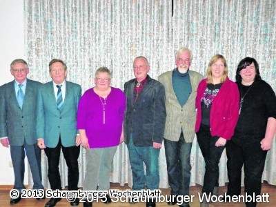 HASTE (Ka). Große Konzerte, ein bayrischer Abend, Ausflüge, Harmonie und das gemeinsame Singen verbindet die 42 aktiven Sänger des Eisenbahnchors Haste unter dem Vorsitz von Gisela Meier. Sie berichtete bei der Jahreshauptversammlung über aktive und abwechslungsreiche Monate und freute sich auch in diesen Stunden über die Anwesenheit vieler passiver Mitglieder und Gäste im Bürgerhaus. Dankesworte gingen an den Chorleiter Hansjürgen Lemme für sein Engagement, seinen Einsatz und die aufgebrachte Energie. Zudem würdigte Meier die Arbeit des Vorstandes und hob einige besonders aktive Sänger hervor, die am PC, in der Organisation und in der Planung ihr Können einbrachten. Würdigung fanden die langjährigen Mitglieder mit Fritz Baule, Karl Springinsgut und Gerhard Springinsgut, die auf 60-jährige Verbundenheit blicken. Weitere Ehrungen gingen an Maria Meirich für 50-jährige Treue, an Magda Tegtmeier für 40-jährige Mitgliedschaft, Jürgen Geisel und Werner Steege für 30 aktive Jahre und Sylvia Becke für 15-jährige Sangesfreude. Einstimmigkeit erfuhr die Chorgemeinschaft bei den Vorstandswahlen. Gisela Meier wurde das volle Vertrauen ausgesprochen. Sie bleibt 1. Vorsitzende und freut sich auf eine gute Zusammenarbeit mit ihrem neuen Stellvertreter Eike Loos. Die Finanzen wissen die Mitglieder auch weiterhin bei Klaus Lippke in besten Händen, der die Kasse gemeinsam mit der neugewählten Stellvertreterin Sonja Reese verwaltet. Für informative Protokolle sorgt in alter Manier Bernhard Meyer und weiß nun Silvana Friedhof als Vize an seiner Seite. Bürgermeister Sigmar Sandmann gratulierte den Gewählten und Geehrten zu ihren Erfolgen und dankte im Namen von Rat und Verwaltung für die Chorbereicherung anlässlich des Haster Jubiläums. Foto: ka