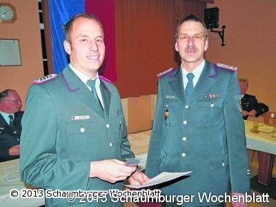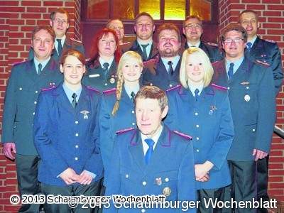 OHNDORF (Ka). Im vergangenen Jahr engagierten sich die Aktiven der Freiwilligen Feuerwehr Ohndorf insbesondere für die Jugendarbeit. Höhepunkt war das Gemeindezeltlager der Nenndorfer Kinder- und Jugendfeuerwehren auf dem Sportgelände. Anlass für die Ausrichtung war das 25-jährige Jubiläum der hiesigen Jugendfeuerwehr. Es wurde als herausragendes Ereignis bezeichnet, welches dank Unterstützung der Dorfgemeinschaft beste Umsetzung fand. Ein Rückblick auf ein Vierteljahrhundert Jugendwehr und ein aktueller Bericht über die derzeit 12 Mitglieder folgten. Die aktive Wehr begrüßte Berit Bock und Linda Wehrhahn aus der jungen Garde in den aktiven Reihen. Die Kameraden absolvierten 46. Dienste bei wenigen Einsätzen. Theoretische und praktische Ausbildungen standen ebenso auf dem Programm, wie Wettbewerbsvorbereitungen. Stemme bezifferte die Personenstunden auf mehr als 2.050. Im Jahr 2014 soll im Landkreis der Digitalfunk starten, der eine Schulung fordert. Abschnittsleiter Uwe Blume zeichnete Matthias Bahe, Jens Bremer, René Bremer, Daniel Kulbe, Melanie Kulbe, Nils Leonhard, Frank Meyer und Marco Thiele für ihre 25-jährigen Verdienste im Feuerlöschwesen mit dem Ehrenzeichen des Landes Niedersachsen aus. Friedrich Gottschalk erhielt für 50-jährige Mitgliedschaft das Ehrenzeichen des Landesfeuerwehrverbandes. Stemme beförderte Marie Bolting und Julia Stemme zu Feuerwehrfrauen und Markus Wille zum Hauptfeuerwehrmann. Der stellvertretende Gemeindebrandmeister Carsten Norden beförderte Marcel Möller zum Oberlöschmeister. Foto: ka