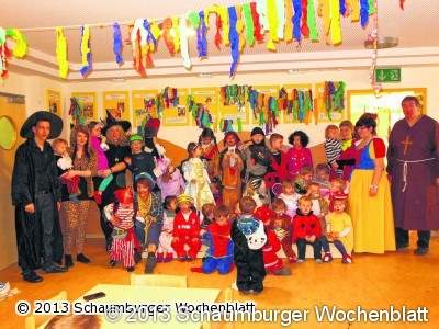STADTHAGEN (em). In den vergangenen Wochen wurde fleißig an der Dekoration für den AWO-Kindergarten gewerkelt. Da das Thema "Märchen" die Kinder schon eine Weile beschäftigt hatte war klar, am Rosenmontag sollten zauberhafte Gestalten die Kindertagesstätte bereichern. Am Montagmorgen füllte sich die Einrichtung mit Feen, Hexen, Piraten, Rittern, Prinzessinnen, Zauberern und vielen anderen Märchen- und Fantasiegestalten. Selbst die Krippenkinder, im Alter von ein bis drei Jahren, kamen nicht wie gewohnt in Jeans und Pullover sondern hatten viel Spaß in ihren kleinen bunten Verkleidungen. Für das leibliche Wohl wurde wieder durch die Eltern gesorgt, die alle etwas ganz besonders Leckeres zum Fasching-Frühstücksbuffet beisteuerten. Im Anschluss trafen sich alle im Foyer, wo die Verkleidungen präsentiert und ausgelassen getanzt wurde.Foto: privat