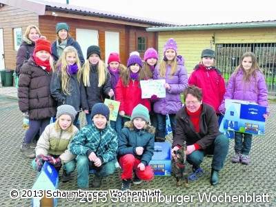 BAD NENNDORF (Ka). Die Theatergruppe der Berlin-Schule unter der Leitung von Sabine Bock und Andrea Wiedemann machte auch in diesem Jahr Theater, ein angenehmes Theater die dem "Zufall" galt. Die Schüler der 4. Klassen schrieben gemeinsam das Stück "Der Zufall" und richteten ihr Augenmerk auf eine bühnenreife Krimigeschichte, die einen Bankraub beinhaltete. Anfang Februar traten die 14 Laienschauspieler vor großes Publikum in der Grundschul-Aula, ernteten viel Applaus, Lob, wie auch Anerkennung und erzielten Einnahmen in Höhe von 137 Euro. Das Theater hat sich für das Team gelohnt. Die engagierte Gruppe hatte ein gemeinnütziges Ziel vor Augen und spendete zum 2. Mal in Folge den Erlös an die Tierauffangstation unter der Leitung der Tierschutz-Vorsitzenden Jutta Schneider. Sie freute sich über das Engagement der Grundschüler und zeigte ihnen die Anlage und die dort stationierten Tiere rund um Hund und Katze. Der Betrag fließt in die Verpflegung und das Streu für der Tiere, informierte Schneider die muntere Truppe bestehend aus Stine, Jette, Nina, Laura, Finni, Constanze, Lara, Matze, Gero, Sina, Julius und Teresa. Besonders in der kalten Jahreszeit benötigen die Vierbeiner viel Wärme, eine gesunde Ernährung und ein kuscheliges Nest. Foto: ka