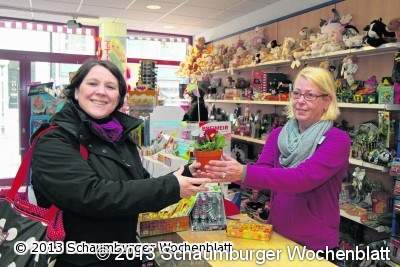 Der SMS hatte die 3000 Topfprimeln an seine Mitgliedsgeschäfte in Stadthagen verteilt. Den Einzelhändlern blieb überlassen, in welcher Form sie diese an ihre Kunden weitergeben. So erhielt etwa Ute Peters am Ende ihres Einkaufes beim Spielwarenfachgeschäft "Spielmit" in der Oberstraße ein solches Primel-Geschenk. "Das ist wirklich nett, ich freue mich", erklärte die Stadthägerin lächelnd. Die Blume passe sehr gut ins Wohnzimmer daheim.