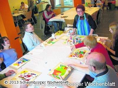 STADTHAGEN (em). Malen und gestalten kann jeder. Man muss sich nur trauen. Beides kann ein Beitrag für ein inklusives Angebot im Sozialraum sein. Den Beweis dafür haben die Besucher der Veranstaltung der Paritätischen Lebenshilfe Schaumburg-Weserbergland (PLSW) in der Enzer Straße erbracht. Mit Künstlern aus dem Landkreis konnten verschiedene Maltechniken ausprobiert werden. Dazu kamen noch Angebote wie Glasgravur und das Gestalten von individuellen Freundschaftsbüchern. Freiwillige der PLSW haben das Angebot unterstützt.
