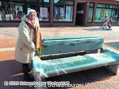 In der Fußgängerzone stehen die neuen, noch in Folie verhüllten Bänke und warten auf bessere Zeiten, die mit Sonnenschein einhergehen. So lange der Frost den Frühling einhüllt, bleiben auch die Sitzgelegenheiten eingetütet.