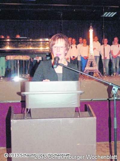 BAD NENNDORF (Ka). Das Gymnasium Bad Nenndorf unter der Leitung von Oberstudiendirektorin Dr. Irmtraud Gratza-Lüthen bietet den Schülern gesellschaftswissenschaftliche, musikalische, naturwissenschaftliche und sprachliche Bereiche an. Ein Mix aus diesem Angebot wurde beim deutsch-französischen Schüleraustausch-Jubiläum präsentiert. Die Unterstufe begrüßte musikalisch mit "Le Coq est mort" vor einem Miniatur-Eifelturm, den ein Schüler aus der 6b für das Ereignis zusammengebaut hat, die Gäste im Forum. Seit dem Jahr 1963 pflegten rund 13.000 Schüler die Freundschaft zum Lycée Albert Triboulet in Romans/Isère (Frankreich), bezifferte Gratza-Lühten die hohe Resonanz und dankte federführend den Verantwortlichen der letzten Jahre mit der stellvertretenden Schulleiterin, Studiendirektorin Christiane Freers-Jung und der französischen Kollegin Laurence Dill für die gute Organisation und Planung. Die 50-jährige Freundschaft erfuhr keine Scheidung, hingegen eine große Bedeutung und Bereicherung für beide Seiten. Das Gymnasium ist seit 2001 Europa-Schule und kann auf viele kooperative europäische Projekte blicken. Die vorbildliche und gute Zusammenarbeit mit Lycée Triboulet sei in der Feierstunde besonders hervorzuheben, so die Schulleiterin. Die Partnerschaft umfasst neben den Teilnahmen am Unterricht auch gesonderten Sprachunterricht, wie auch Exkursionen und eine kulturelle Programmvielfalt. Diesbezüglich dankte sie auch den vielen Eltern, die ihr Familienleben auf die Gäste einstellen. Von Heimweh-Kummer bis zur Verpflegung kümmern sie sich liebevoll um die Schüler. Dem feierlichen Moment wohnten auch Schüler der ersten Stunde mit Rudolf Schönfelder, Edmund Kast, Roland und Bernard Cornus und Jacques Deschamps bei. Foto: ka