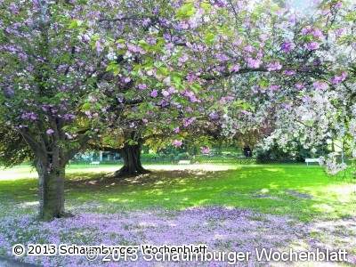 BAD NENNDORF (pd). Der Bad Nenndorfer Kurpark war vor allem in den vergangenen Monaten immer öfter wegen der großen Baumfällaktionen und umfangreicher Sanierungsarbeiten im Blickfeld. Die große Vielfalt an Pflanzen und beschaulichen Plätze traten dabei in den Hintergrund. Wer in diesen Tagen durch den Park schlendert, muss von der enormen Blütenpracht und dem betörenden Duft, der durch die Lüfte zieht, einfach begeistert sein. Gerade jetzt, wenn zum Beispiel Kirsche und Flieder in voller Blüte stehen, kommt ein Parkspaziergang einer kleinen "Wellness-Kur für die Seele" gleich. Augen und Nase werden gleichermaßen verwöhnt, und wer früh am morgen unterwegs ist, bekommt auch etwas auf die Ohren. Von den zahlreichen Vögeln, die ihr Maienlied anstimmen. Eine Szenerie, einfach nur zum Genießen! Foto: pd