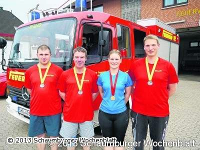 HASTE (Ka). Von Feuerwehrleuten erwartet man gemeinhin, dass sie über eine entsprechende körperliche Fitness verfügen. Gerade im Einsatz unter Atemschutz kann die Leistungsfähigkeit über die Gesundheit des Feuerwehrmitgliedes und der zu rettenden Person entscheidend sein. Sport steht daher in vielen Feuerwehren auf dem Dienstplan. Auch der Landesfeuerwehrverband Niedersachsen ruft mit seiner Aktion "Feuerwehr bewegt" die Wehrmitglieder dazu auf, die persönliche Fitness zu verbessern. Vier Feuerwehrleute aus Haste und Helsinghausen/Kreuzriehe wollten nun ihre körperlichen Grenzen austesten und suchten eine Herausforderung. Diese fanden sie beim diesjährigen Marathon in Hannover. Die Haster Kameraden Carsten Groß, Olav Sievert und Rüdiger Wehrmann begaben sich auf die Halbmarathon-Strecke. Stephanie Heinrich aus der Feuerwehr Helsinghausen/Kreuzriehe, die seit vier Jahren regelmäßig läuft, startete in der Landeshauptstadt ihren ersten Marathon. Dem Start ging ein akribisches Training voraus. Bis zu sechs Monate dauerte die Vorbereitung auf den großen "run". Dennoch war die Anspannung kurz vor dem Start groß. Als es dann gemeinsam mit 16.000 weiteren Läufern auf die Strecke ging, machte sich das Training bezahlt. Getrieben von den Anfeuerungsrufen der zigtausend Zuschauer und spontan geschlossenen Laufgemeinschaften erreichten alle Feuerwehrleute das Ziel. Die Laufzeiten waren an diesem Tag unerheblich. Es überwog das Glücksgefühl, eine große sportliche Leistung absolviert zu haben.