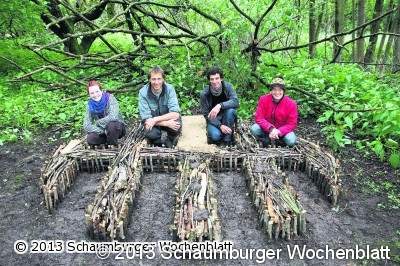 STADTHAGEN (jl). Ein Bild aus Kresse, Waldgeister aus Lehm, eine Krake aus Laub und Sägespäne, die im Gestrüpp lauert. Zum fünften Mal laden der Kultur- und Sportverein "Tu Wat" und das Projekt Probsthagen zum Festival "Land Art – Naturkunst, Klänge und Illuminationen" auf den Bruchhof in Stadthagen. Am heutigen Sonnabend (25. Mai) von 14 Uhr bis Mitternacht und am morgigen Sonntag (26. Mai) von 14 bis 18 Uhr gibt es Kunst mit und in der Natur zu entdecken. Kein Eintritt, kein Andenkenladen, keine Titel und Preisschilder – Auf mehr als einem Hektar steht allein die Kunst mit natürlichen Materialien im Mittelpunkt. Jedes der Werke ist ein Unikat, das es so nie wieder geben wird. Es bleibt in der Natur zurück und irgendwann vereint es sich mit eben dieser.