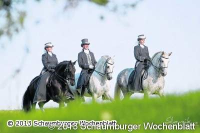 BAD NENNDORF (Ka). Am Samstag, 22. Juni, findet zum dritten Mal die Sommernacht der Pferde im Kurpark statt. Ab 20 Uhr präsentiert sich das beliebte Event hinter dem Schlösschen im neuen Gewand. Die Familienveranstaltung rund um brillante Reitkunst auf höchstem Niveau und die schönsten Pferderassen mit Friesen, Lipizzaner, Ponys, Knabstrupper, wie auch iberische Hengste erfreuen sich immer größerer Faszination. In prunkvollen Kostümen und beeindruckenden Choreographien verzaubern die Reiter mit wunderschönen Pferden die Sommernacht. Clowngärtner Papilian (Hendrik Becker vom Theater Löwenherz) lädt die Gäste zu magischen Momenten auf die Statuenwiese ein. Der Abend hält einen besonderen Zauber bereit. Die Statuen werden lebendig und entführen Papilian und die Zuschauer in eine Welt bunter Geschichten und Abenteuer, der Freundschaft und Harmonie und in die poetische Welt der Reiterei. Die Sommernacht des Theaters Löwenherz verzaubert und verführt mit Showreitern, Pferdeflüsterern, spektakulären Inszenierungen und traumhaften Pferden. Einige der bekanntesten Showreiterinnen und Showreiter Deutschlands bereichern die Familienveranstaltung. Eintrittskarten sind in der Wandelhalle unter der Rufnummer 05723 - 748580 und in der Tourist-Information (Haus Kassel) erhältlich. Erwachsene / Jugendliche ab 15 Jahren zahlen 25 Euro pro Person (Abendkasse 30 Euro), die Familienkarte (2 Erwachsene und 2 Kinder) kostet 70 Euro (nicht an der Abendkasse erhältlich) und Kinder bis 14 Jahre zahlen 17,50 Euro