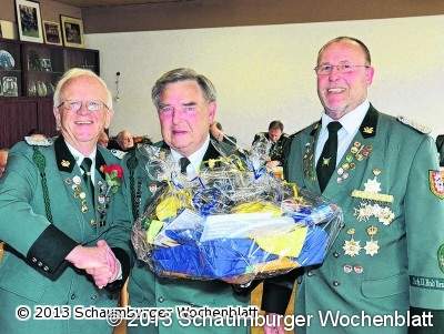 Mit Goldenen Ehrennadeln des Deutschen Schützenbundes und entsprechenden Urkunden wurden Alfred Hagemann, Gerhard Matthias und Heinz Wackerhahn ausgezeichnet. Die drei sind dem Schützenwesen seit sechs Jahrzehnten treu verbunden. Die Ehrennadel in Silber gab es für Rüdiger Hensel, der dem Verein vor einem Vierteljahrhundert beitrat. In seinem Rückblick auf das vergangene Jahr bezeichnete der Vorsitzende das Jahr 2012 für den Verein als "schwierig". Dazu hätten die Umbaumaßnahmen im Vereinsheim beigetragen. "Eine komplette Fertigstellung der Räume für den Schützenverein kann ich zum derzeitigen Zeitpunkt leider nicht bekannt geben", führte Hoffmeister aus. Bei einer Zusammenkunft der Vereine mit dem Architekten sei er auf 2013 vertröstet worden. "Aber das Jahr 2013 kann lang sein", klagte der Schützenchef. Foto: bt