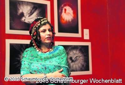 "Ich jage nicht den Moment, ich erkläre den Moment", umschrieb Asrin Eskandari in ihrer kurzen Einführung in die Ausstellung ihr Wirken mit der Kamera. Sie präsentiert im Galerie-Café zwei Bilderserien und mehrere Einzelbilder. Die Serie "Ein Moment des Nachdenkens" etwa, bedient sich traditioneller Symbolik aus der kurdischen Heimat der Künstlerin ebenso wie moderner Bildsprache. Auf Nachfrage der Eröffnungsgäste bestätigte Asrin Eskandari, dass sich diese Serie mit der Stellung der Frau in ihrer Herkunftsgesellschaft auseinandersetze. Im "Rachen der Zeit" lautet der Titel einer deutlich andersartigen Bilderserie. Ihre Arbeits-Technik orientiere sich an der jeweiligen Thematik, erläuterte die Künstlerin. Asrin Eskandari stammt aus dem iranischen Kurdistan und lebt seit Anfang 2012 in Stadthagen. Nach Ausstellungen in Kurdistan und im Irak zeigt sie ihre Werke erstmals in Deutschland. Das Galerie-Café in der "Alten Polizei" in der Obernstraße ist von Montag bis Donnerstag von 18 Uhr bis 23 Uhr geöffnet.Foto: bb