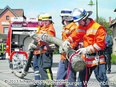 HOHNHORST (Ka). Die Freiwillige Feuerwehr Ohndorf hat den diesjährigen Gemeindewettbewerb der Nenndorfer Feuerwehren gewonnen. Sieben Gruppen nahmen an dem Entscheid teil, der anlässlich des 80-jährigen Bestehens der örtlichen Wehr in Hohnhorst stattfand. Im Rahmen des Wettbewerbs galt es, ein angenommenes Feuer zu bekämpfen. Die aus neun Mitgliedern bestehende Gruppe musste die Wasserversorgung herrichten, Schlauchleitungen verlegen, mit einer Leiter einen Turm besteigen, um drei Ziele mit Wasser abzuspritzen. Anschließend wurden alle Gerätschaften abgebaut und im Feuerwehrfahrzeug verstaut. Für die Übung gab es ein Zeitlimit von zehn Minuten. Von den einzelnen Gruppenmitgliedern wurde zudem noch theoretisches Wissen abverlangt. Das Wertungsteam aus der Samtgemeinde Sachsenhagen achtete auf die Einhaltung der Bestimmungen und notierte die Fehlerpunkte. Nach der Auswertung stand fest, dass die Gruppe aus Ohndorf mit 384,82 Punkten den Titel an die Aue holte. Auf den weiteren Plätzen folgten die Feuerwehren aus Haste (381,10 Punkte), Horsten (338,90), Vorjahressieger Riehe (330,60), Bad Nenndorf (327,60), Hohnhorst/Rehren (312,13) und Riepen (267,40). Im nächsten Jahr findet der Wettbewerb anlässlich des 100-jährigen Bestehens der Feuerwehr Haste im Eisenbahnerdorf statt. Foto: ka