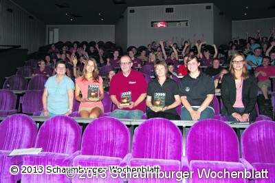 Um die Spannung bei der Verleihung aufrechtzuhalten, wurden die Filme im gut besetzten Kinosaal in der Reihenfolge ihrer Platzierung vorgeführt. Nachdem der zweitplatzierte Film startete, brandete Jubel im Publikum auf, denn jetzt war klar, dass es der Schaumburger Jugendchor auf Platz eins geschafft hatte. Dennoch, zufrieden waren alle Vereine, den Verlierer gab es bei dieser Aktion nicht. Bleibt nur noch die Frage nach der Namensfindung für den Preis: Die Sparkasse besitzt ein großes, rotes Sparschwein, dass bei Veranstaltungen zur Dekoration aufgebaut wird. Spitzname der Sau: Elfriede. Da lag der Name des Preises, der auch in Zukunft verliehen werden soll, sehr nahe.