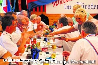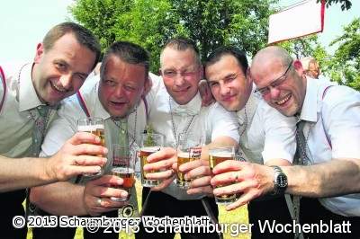STADTHAGEN (jl). "Sehr gute Stimmung und super Wetter, bei dem man viel trinken muss", mahnte Tim Blume augenzwinkernd vor dem Zelt des Fürstenrotts. "Und zwischendurch natürlich auch Wasser." Während die 62 Rottbrüder in den noch leicht kühleren Morgenstunde bereits jede Menge mit ihrer neuen Einmann-Kapelle Peter Schölzel gesungen hatten, flüchteten sie gen Mittag aus dem tropischen Klima im Zelt – Da halfen selbst die drei Ventilatoren nichts mehr.