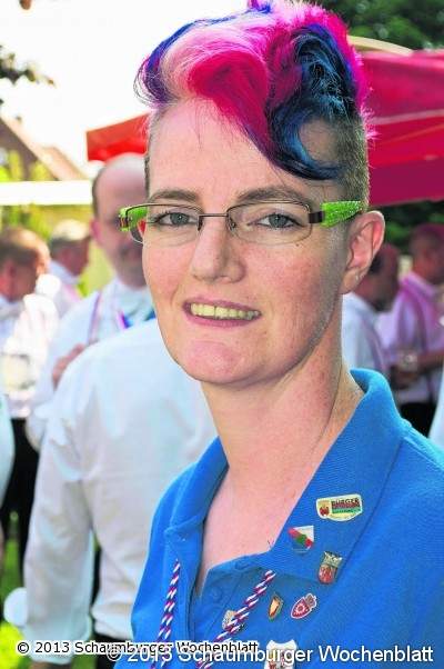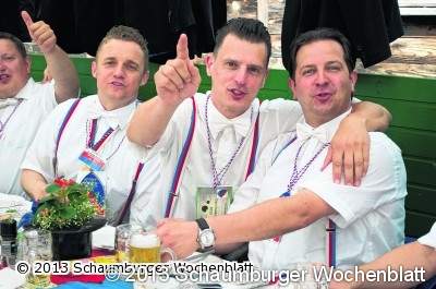 STADTHAGEN (wa). "Schatzi schenk mir ein Foto" singen die Lindenrottbrüder als das Schaumburger Wochenblatt zur Stippvisite im Rottlokal im Garten der Familie Elsner vorbeischaut. Na klar bekommt das Lindenrott Bilder. So gute Stimmung muss schließlich festgehalten werden. Mittendrin und als Ehrengast vor Ort ist zwar ein Nicht-Schaumburger, aber trotzdem ein bekanntes Gesicht: Maik Beermann aus Nienburg (CDU-Bundestagskandidat) feierte im Lindenrott gemeinsam mit etwa 60 Rottbrüdern was die Bierzeltgarnitur hält. Er hatte von Veranstaltungskaufmann und Rottmeister Marco Schulz eine Teilnehmerkarte erhalten. Diese ist in diesem Jahr das Lindenrott-Symbol, welches jeder Rottbruder um den Hals trägt. Und dem natürlich auch nur dann Eintritt gewährt wird. Weil das Rottmeisterehepaar Monique und Marco Schulz an der Bergkette wohnt, wurde das Festzelt bei der Familie Elsner aufgebaut. Das passiere immer dann, wenn ein Rottmeister nicht in der Quartierschaft wohnhaft sei, erklärt Marco Schulz. An diesem Donnerstag feierte das Lindenrott nicht nur das Schützenfest, sondern auch den Geburtstag von Marlies Elsner. Die 71-Jährige bekam einen großen Blumenstrauß und hielt sich während der Feierlichkeiten im Hintergrund. Tochter Simone Elsner zeigte derweil trendbewusst Flagge: Ihre Kurzhaarfrisur hatte sie in den Schaumburger Farben eingefärbt. "Das wäscht sich nach einiger Zeit wieder heraus, einmal im Jahr muss das sein", sagt Simone Elsner. Eine tolle Idee! Als stille Mitwirkende, die im Grunde alle Fäden in der Hand hält, wird sie von Marco Schulz benannt. Den Temperaturen geschuldet halten sich die meisten Rottbrüder lieber draußen, als im Zelt auf. "Wir sind nicht passend angezogen und kämpfen mit dem Wetter", sagt der Rottmeister. Das ändert sich allerdings schlagartig, als das nächste Lied angestimmt wird. Gemeinschaft steht im Lindenrott an erster Stelle und so wird den heißen Temperaturen mit kühlem Schaumburger Bier und musikalischen Klängen getrotzt. Foto: wa