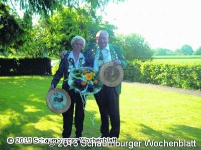 RIEPEN (nb). Aller guten Dinge sind drei, daran hält sich auch der örtliche Schützenverein. An einem Wochenende hatte er gleich zu drei großen Ereignissen geladen: Dem Königsschießen, dem "Volksbank-Pokal 2013" und zur Verkündung der Vereinsmeister. Mit frühsommerlichem Wetter herrschten die besten Voraussetzungen, die Beteiligung der Schützen ließ ebenfalls keine Wünsche offen. "Das war wie ein kleines Wunder, mit so vielen hat keiner gerechnet", so der Vereinsvorsitzende Bernhard Mossell. Für Werner Wittkugel hat sich das Antreten sogar gleich doppelt gelohnt. Er wurde mit 95 Ring nicht nur Sieger des von der Volksbank in Schaumburg gestifteten Pokals, er ist mit 27 Ring auch der neue Schützenkönig. Als erster Ritter bewies sich Hansi Funke mit 26 Ring, zweiter Ritter wurde Manfred Simmolka mit 24. Doppelten Erfolg konnte auch Amtskollegin Christa Funke verbuchen. Sie wurde mit 23 Ring Schützenkönigin und mit zugleich auch Vereinsmeisterin (272). Erste Dame im Wettkampf um die Königswürde wurde Irma Wittkugel mit 21 Ring, zweite Dame Else Bock mit 20. Vereinsmeister der Senioren I wurde Eberhard Peters (278), Vereinsmeister der Senioren II Helmut Hoyer (275). Vize-Vereinmeisterin wurde Margit Peters (263), Waltraut Voß landete an Position 3. Zweitbester der Senioren I ist Gerd Voß (271), Werner Wittkugel Drittbester Werner Wittkugel (227). Bei den Senioren II steht Hans Funke (230) an zweithöchster Stelle, dicht gefolgt von Manfred Simmolka (225). Platz zwei beim Volksbank-Pokal sicherte sich Bernhard Mossell, den dritten Marcel Mossell, jeweils mit nur einem Punkt Abstand zu ihrem Vorgänger, ein knappes Ergebnis. Foto: nb
