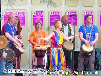 Das Bündnis gegen Rechtsextremismus "Bad Nenndorf ist bunt" setzt seit Jahren mit dem Kulturfest solidarische Maßstäbe gegen Rechts und präsentiert viel Buntes gegen Braun. Unter der Überschrift "Gemeinsam sind wir stark" standen internationale Begegnungen, Genüsse, Musik und Tänze im feierlichen Mittelpunkt. Die Pfeiler des Hamburger Dachs trugen bunte Strick- und Häkelkleidung und wohin das Auge auch schaute, es nahm festliche Landes-Trachten und kolorierte, wie auch dekorative Akzente wahr. Die Trommelgruppe EPBA war nur ein buntes Highlight von vielen Programmpunkten. Unter der Veranstaltungs-Schirmherrschaft von Landrat Jörg Farr und den moderaten Worten von Andreas Kuhnt spielten das Pannonia Orchester ebenso, wie der Posaunenchor der St. Godehardi-Kirchengemeinde, der erstmals zum Kulturfest mit christlichen Musikbeiträgen brillierte. Die VfL-Jugend machte die Feier rund und formierte sich mit bunten Sitz-Gymnastikbällen und Hockern vor der Bühne. Mit Trommelstöcken a la "Safri Duo Perkussion" wurden die Bälle zum optisch rhythmischen Spiel nach dem Klang harmonisch gewählter Musik. Gepaart mit gymnastischen Darbietungen, gekonnter Artistik und vielen Showeinlagen trugen die jungen VfLer zum guten Gelingen des Festes bei.