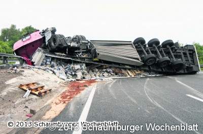 Der Brummi-Fahrer wurde zur Behandlung ins Krankenhaus Bückeburg gebracht, erlitt unter anderem eine Kopfplatzwunde. Zu diesem Zeitpunkt waren glücklicherweise vergleichsweise wenig Autos auf der A2 unterwegs. Alle folgenden konnten Fahrer rechtzeitig bremsen. Die Feuerwehr band aus dem LKW austretende Flüssigkeiten.
